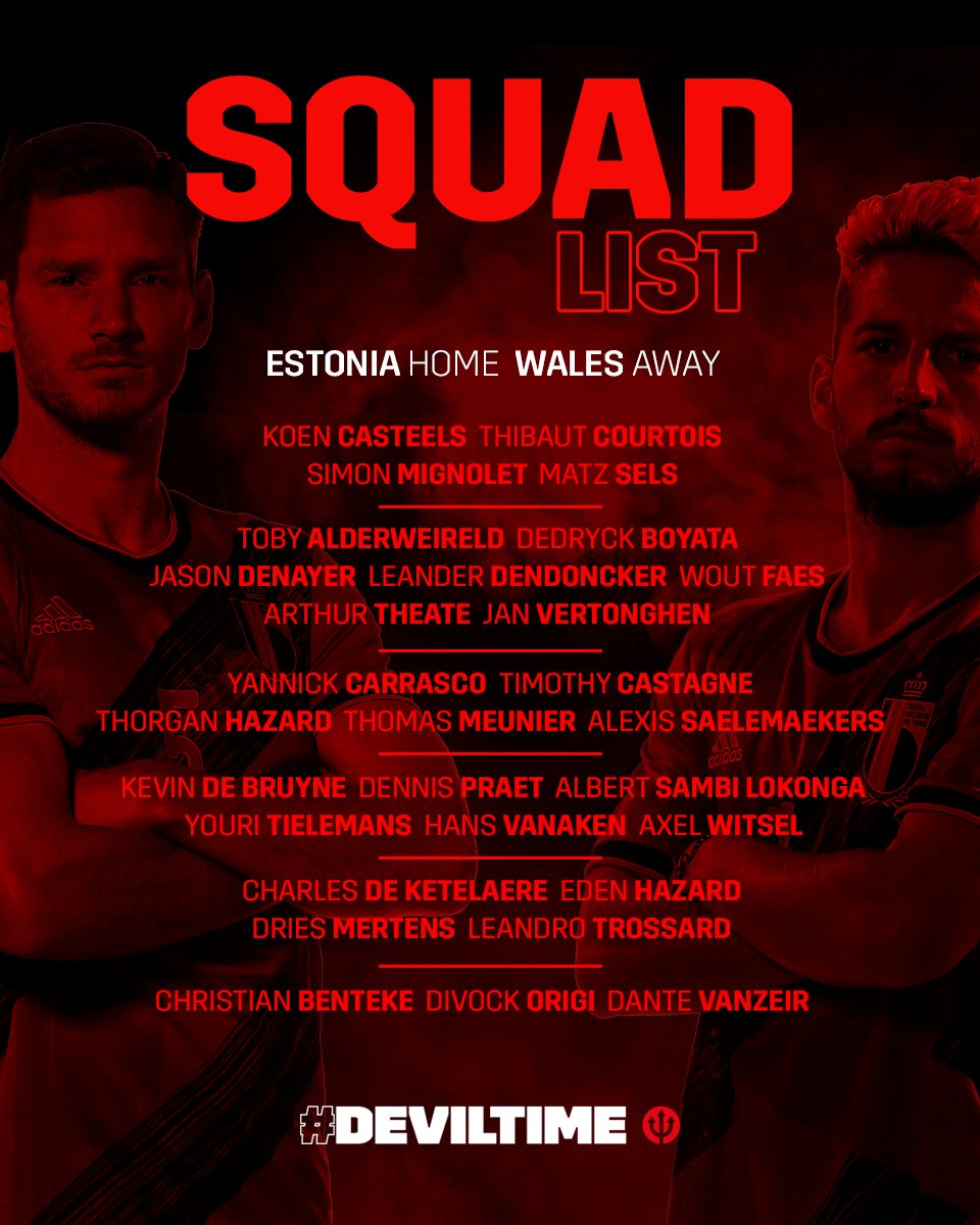 Kombëtarja e Belgjikës më 13 nëntor e pret Estoninë, ndërsa më 16 nëntor përballet me Uellsin, shkruan lajmi.net.