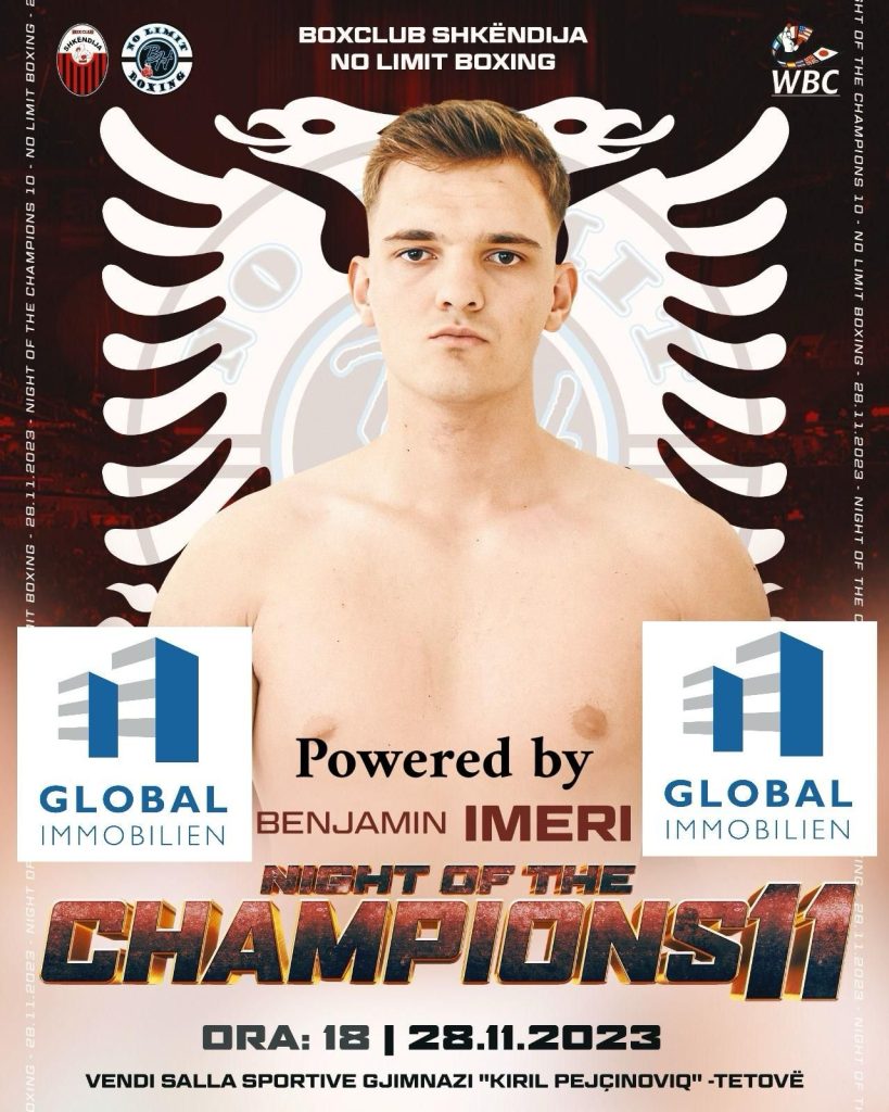 Boksieri i ri dhe shumë ambicioz Benjamin Imeri vazhdon me punën e madhe për sfidat e radhës në boksin profesionist. 20 vjeçari nga Gradeci i Gostivarit duelin e ardhshëm do ta ketë në ditën e flamurit në Tetovë. Halim Abazi me Boxclub Shkëndija No Limit më 28 nëntorë në Tetovë organizon edicionin e radhës të spektaklit të boksit “NIGHT OF THE CHAMPIONS” (Nata e Kampionëve), ndërsa në këtë event Imeri do ta zhvillojë ndeshjen e tij të 5 në boksin profesionist. Me efekt maksimal prej 4 fitoreve në 4 duele, Benjamin Imeri synon triumfin e radhës, ndërsa përballë do të ketë rival me shumë përvojë, bjellorusin Siarhei Huliakevich. Dueli Imeri-Huliakevich do të jetë një nga 12 përballjet e mbrëmjes së 28 nëntorit, ku turkja Elif Nur Turhan do të garojë për titullin kampione e botës në versionin WBC.