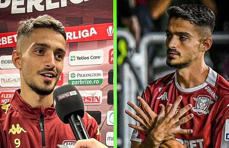 Sulmuesi i Rapidit nga Bukureshti, Albon Rahmani ka festuar golin e tij duke bërë me duar shqiponjën, në ndeshjen ndaj Kluzhit (3:1).