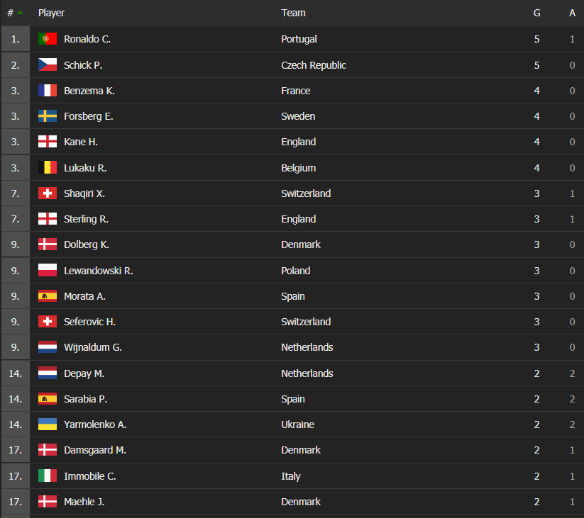 Me pesë gola dhe një asistim, portugezi ishte i pari në listën e golashënuesve.