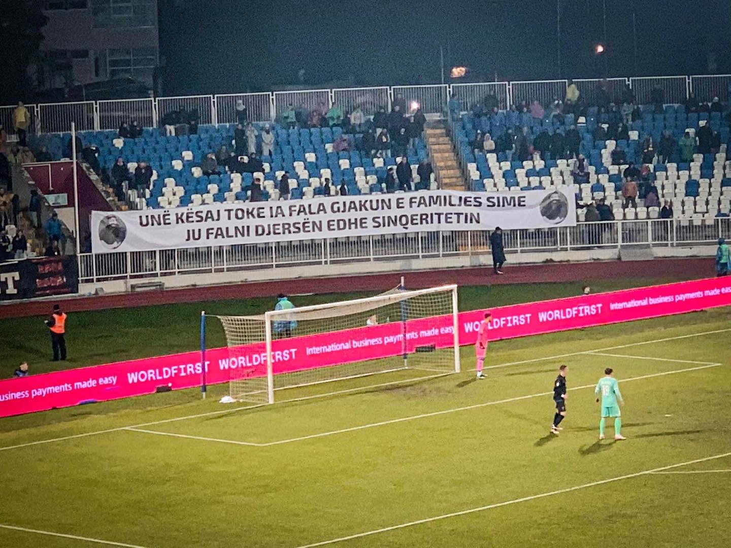 Tifozët zyrtarë të Përfaqësueses së Kosovës, “Dardanët” kanë shpalosur një pankartë gjatë ndeshjes me Bjellorusinë.