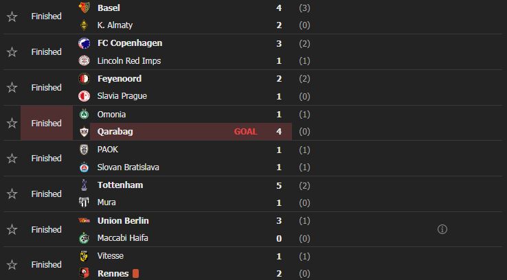 Këto janë rezultatet e të gjitha ndeshjeve që u luajtën nga ora 21:00 në Ligën e Konferencës. /Lajmi.net/