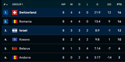 Me këtë barazim Izraeli mban “gjallë” shpresat e kualifikimit duke u renditur në vendin e 3-të me 12 pikë, 4 më pak se Rumania e vendit të dytë dhe Zvicra e vendit të parë.