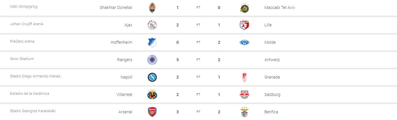 Arsenali mposhti Benfican me rezultatin 3-2, Villareali mposhti skuadrën e Salzburgut me rezultatin 2-1.
