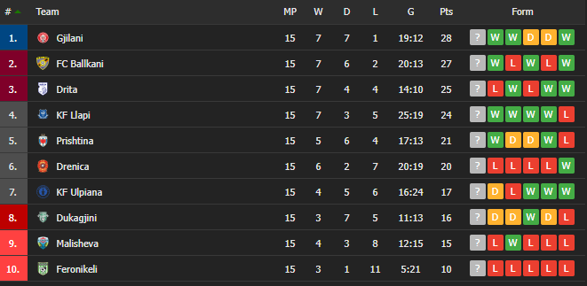 Drita pas humbjes nga Gjilani tani zë vendin e tretë me 25 pikë.