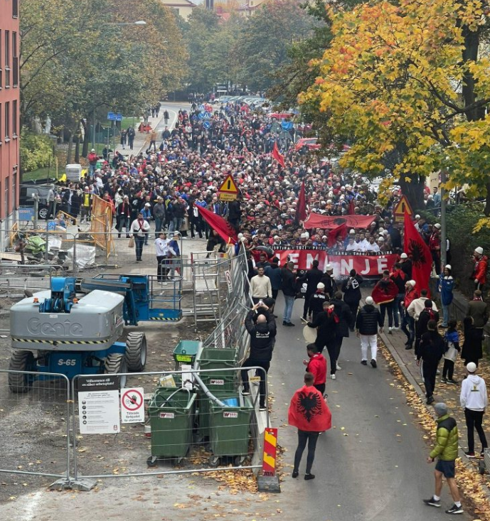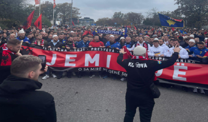 Para ndeshjes, tifozët shqiptarë janë mbledhur në rrugët e qytetit duke kënduar këngë dhe hedhur valle në përkrahje të Kosovës.