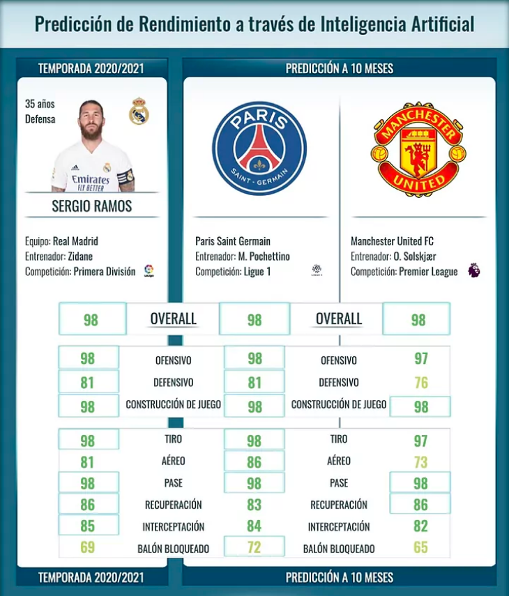 Kompania e inteligjencës artificiale “Olocip” ka krijuar një model vlerësimi për të zbuluar nëse Ramos do të përformonte më mirë te PSG apo te United.