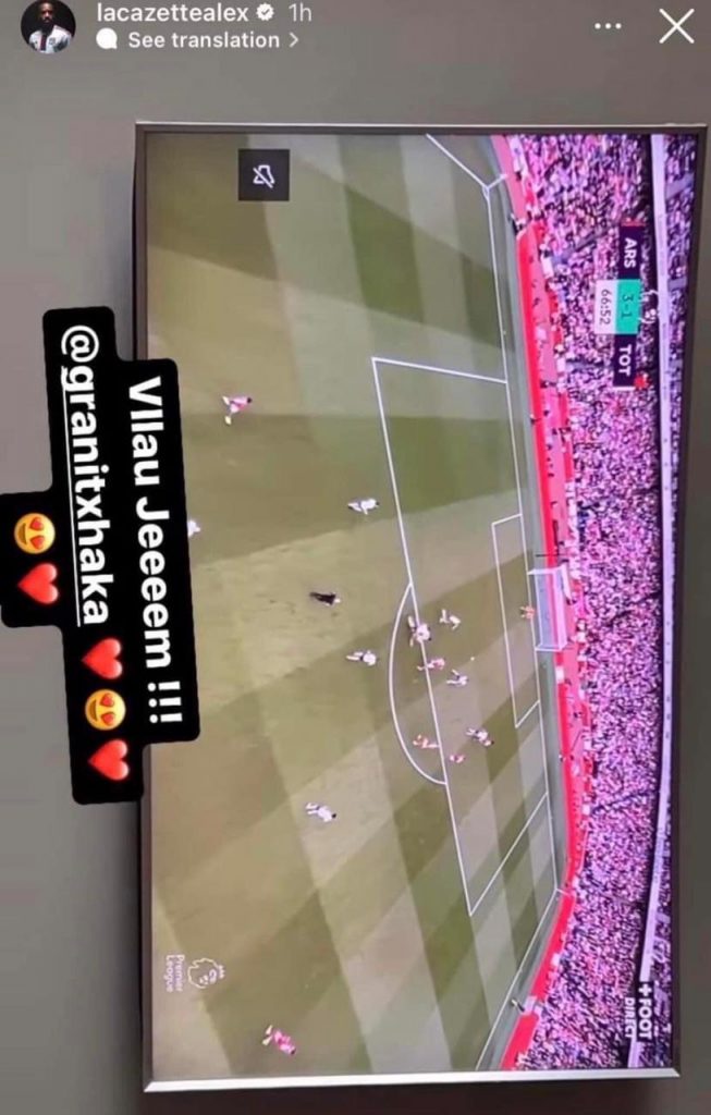 Ish-sulmuesi i Arsenalit, Aleksandër Lakazet, ka zgjedhur që t’i drejtohet në shqip Xhakës, duke postuar një foto nga goli i tij dhe ku shkruan: “Vllau jem”.