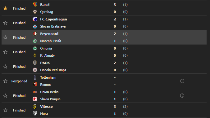Në Ligën e Konferencës, Vittese ka arritur që të mposhtë Muran në ndeshjen e fundit të fazës së grupeve, duke ia rrezikuar Tottenhamit pozitën e dytë, me londinezët që tani iu duhet patjetër fitorja ndaj Rennes për të kaluar tutje.