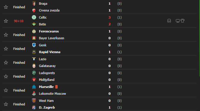 Rezultatet e plota të ndeshjeve të luajtura të Ligës së Konferencës nga ora 21:00.