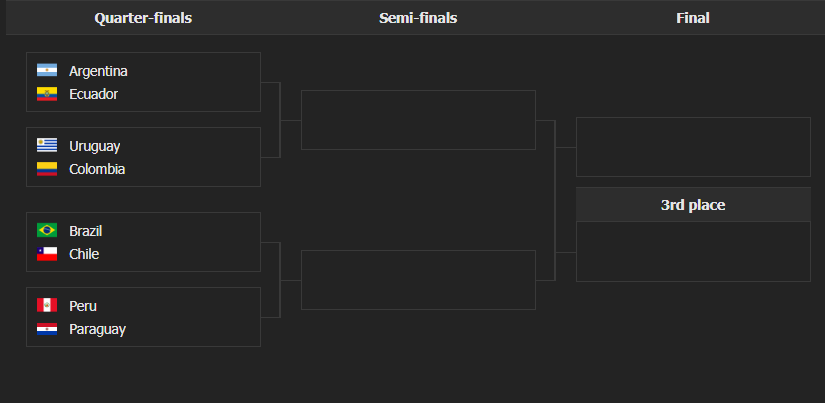Kësisoj, janë mësuar edhe të gjitha çiftet çerekfinale, me ndeshjen më interesante që është mes Brazilit dhe Kilit.