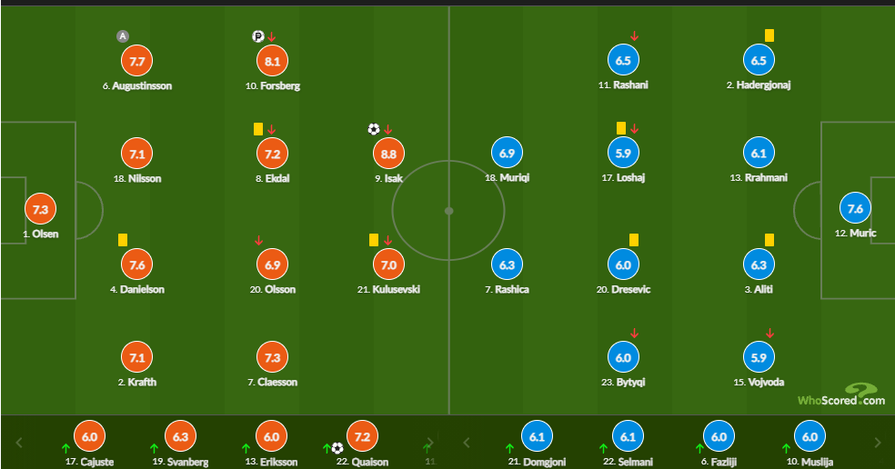Aleksander Isak ishte më i vlerësuari në këtë takim që mori notën 8.8.