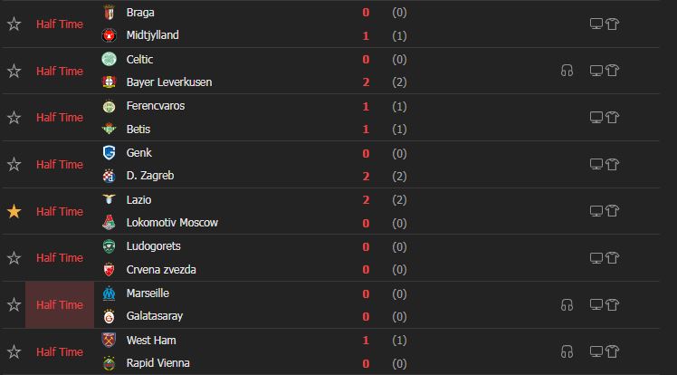 Në duelet tjera West Hami po mposht Rapidin e Vienës 1-0 me golin e Declan Rice, ndërsa nuk ka ende gola në derbin mes Marseilles dhe Galatasarayt. /Lajmi.net/