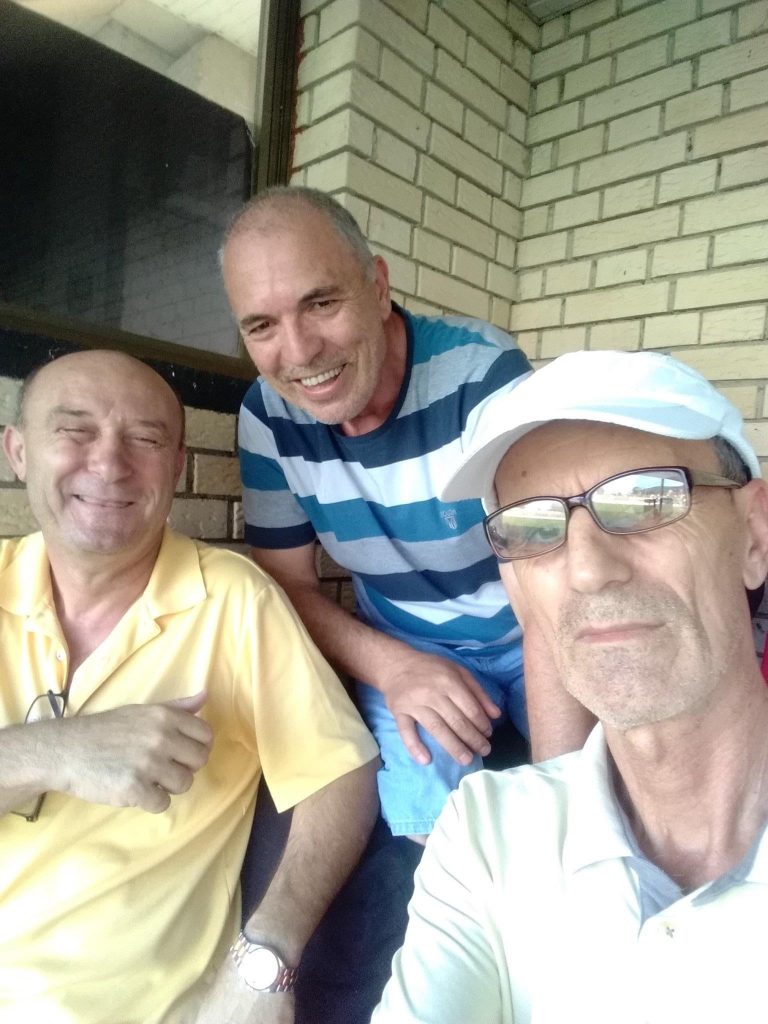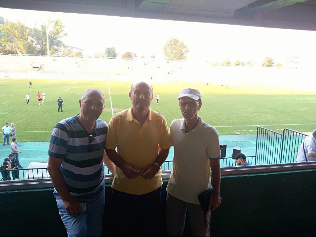 “Ja ku jemi në foto, tre nga gjenerata e vitit 1979, duke ndjekur lojën e Shkëndijës. Njëri pedagog i respektuar (Faik Ademi), njër profesor (unë Gajur Luma) dhe tjetri aktivist i devotshëm dhe shumë i suksesshëm për të drejtat e shqiptarëve kudo që janë (Harun Bruno Ceka).