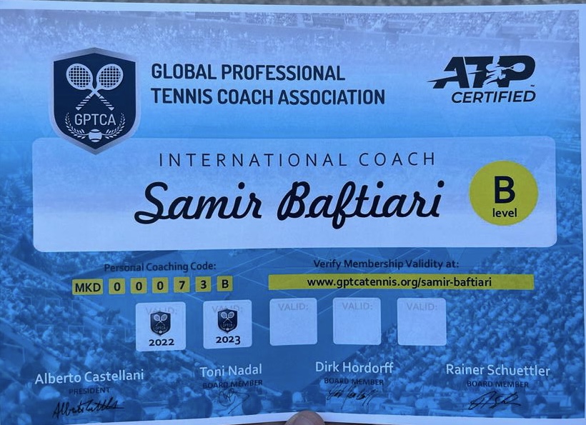 Samir Baftiari është trajneri që ka hapur shkollën e tenisit “Tetova Tennis”, ndërsa së fundmi është pajisur edhe me liçencë trajneri “International coach” që jepet nga “Global Professional tennis coach Association” (Shoqata globale për trajnerë profesional të tenisit).