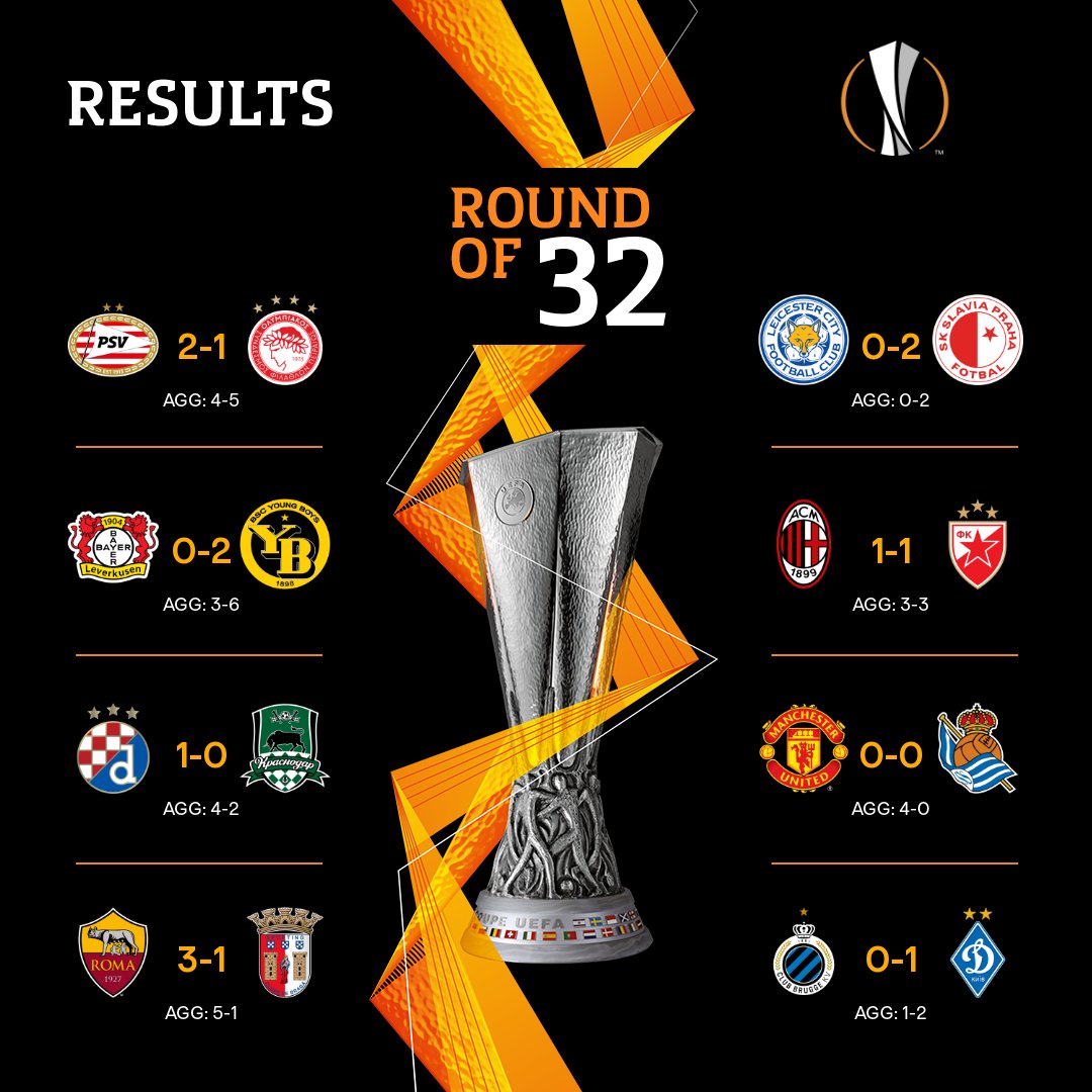 Milan, Roma, Young Boys, Dinamo Kyiv, Dinamo Zagreb, Slavia Prague, Manchester United dhe Olympiacos janë skuadrat që kanë sigurar kalimin tutje në kuadër të Europa League.