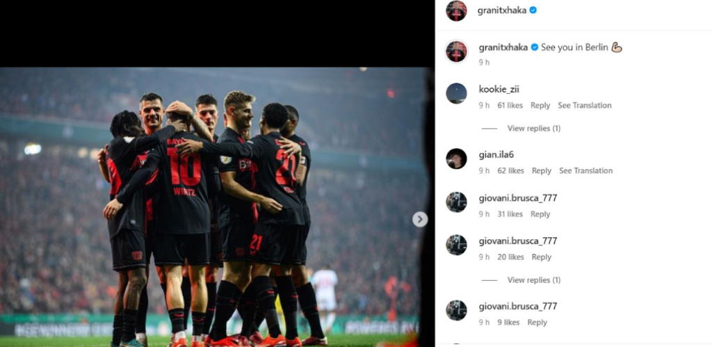 “Shihemi në Berlin”, shkroi Xhaka në gjuhën angleze.